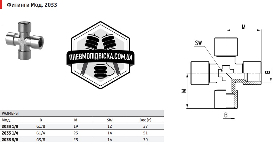 Штуцер хрест CAMOZZI 2033 (мама-мама-мама-мама) , з внутрішніми різбленнями