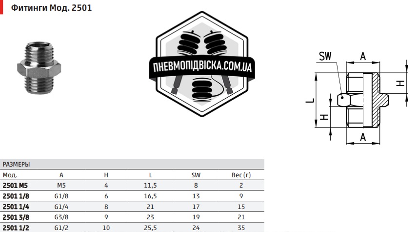 Фітинг прямий CAMOZZI 2501 (папа-папа)