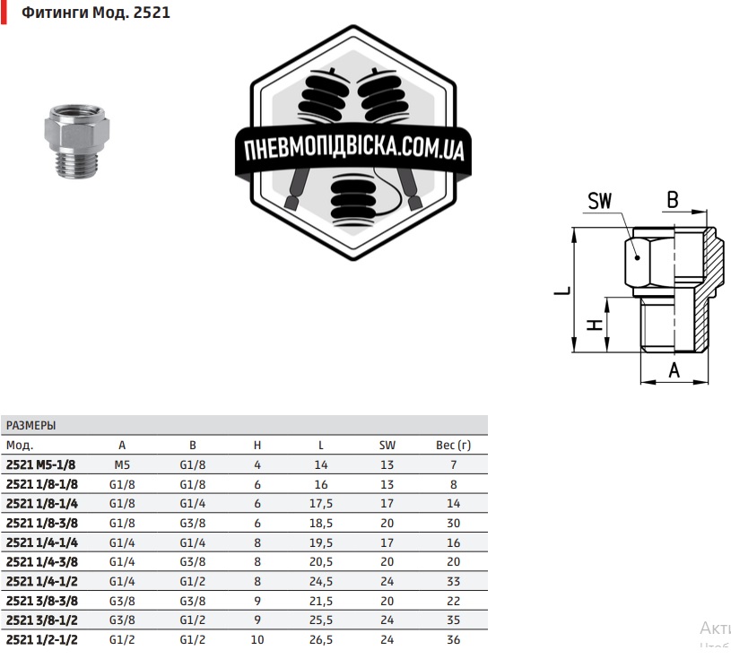 | Загальні характеристики | Штуцер зовнішнє/внутрішнє різьблення дюймова |