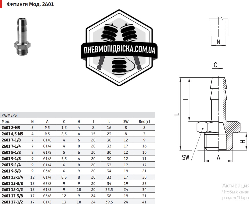 | Загальні характеристики | Штуцер зовнішнє/внутрішнє різьблення дюймова |