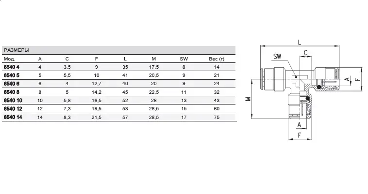 Штуцер цанговий трійник з’єднувач CAMOZZI 6540.