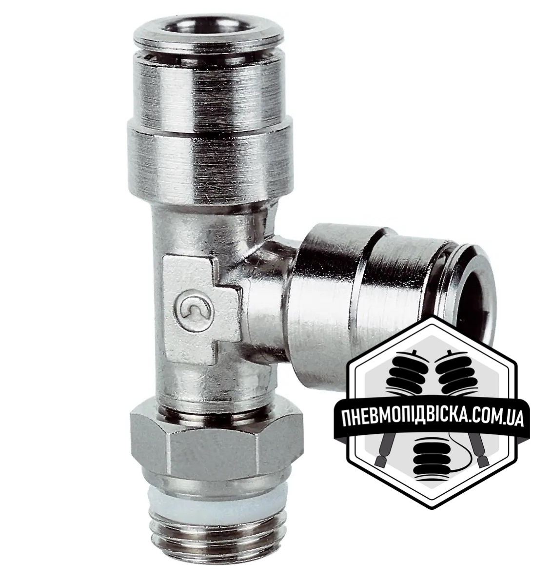 Штуцер цанговий трійник зовнішнім різьбленням CAMOZZI S6440 поворотний.