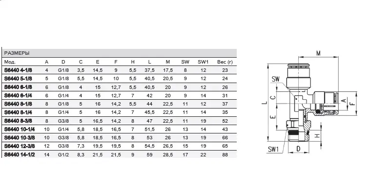1/8, 1/4, 3/8, 1/2, 3/4, М5, М6, М12х1,25