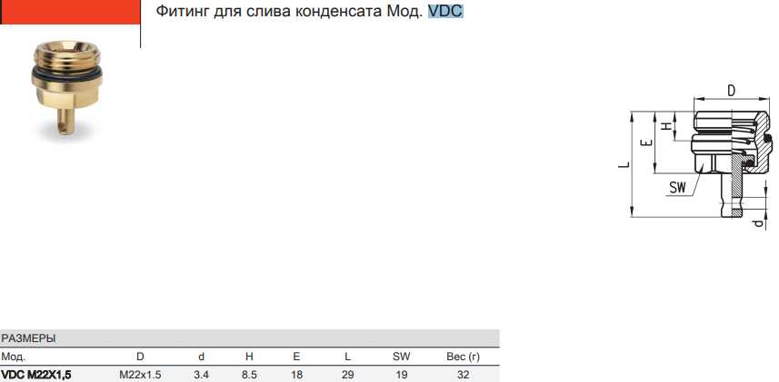 Фітинг для зливу конденсату CAMOZZI VDC М22х1,5