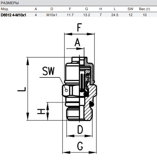 Фітинг прямий з метричним різьбленням CAMOZZI D6512