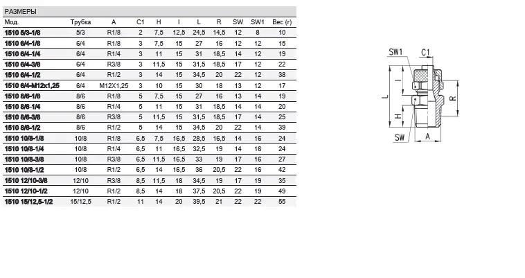 1/8, 1/4, 3/8, 1/2, М12х1,25