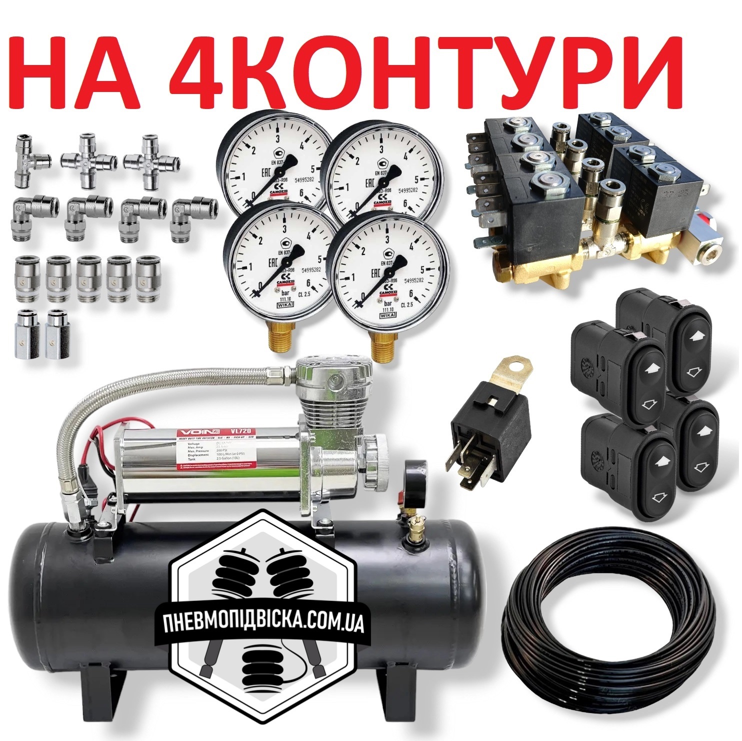 Цей комплект управління є найпопулярнішим серед користувачів пневмопідвіски у яких неровномірна загрузка. Управління через електроклапани дозволяє керувати кожною подушкою окремо.