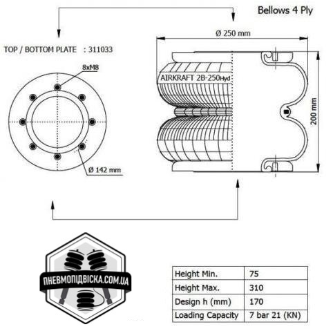 Пневмобалон Airkraft 2B-250 Hyd метал. кільцями