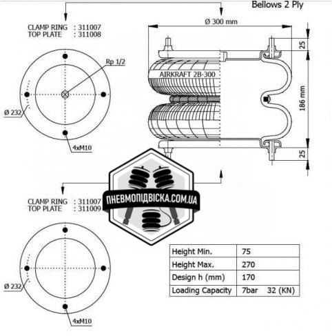 Пневморесора гофрована бублик подвійний, діаметр 300мм.