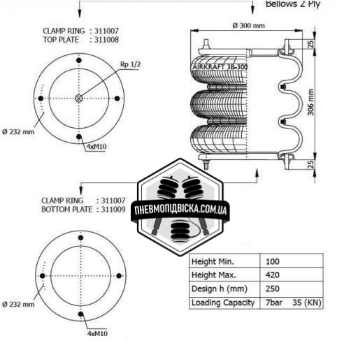 Пневморесора гофрована бублик потрійний, діаметр 300мм.